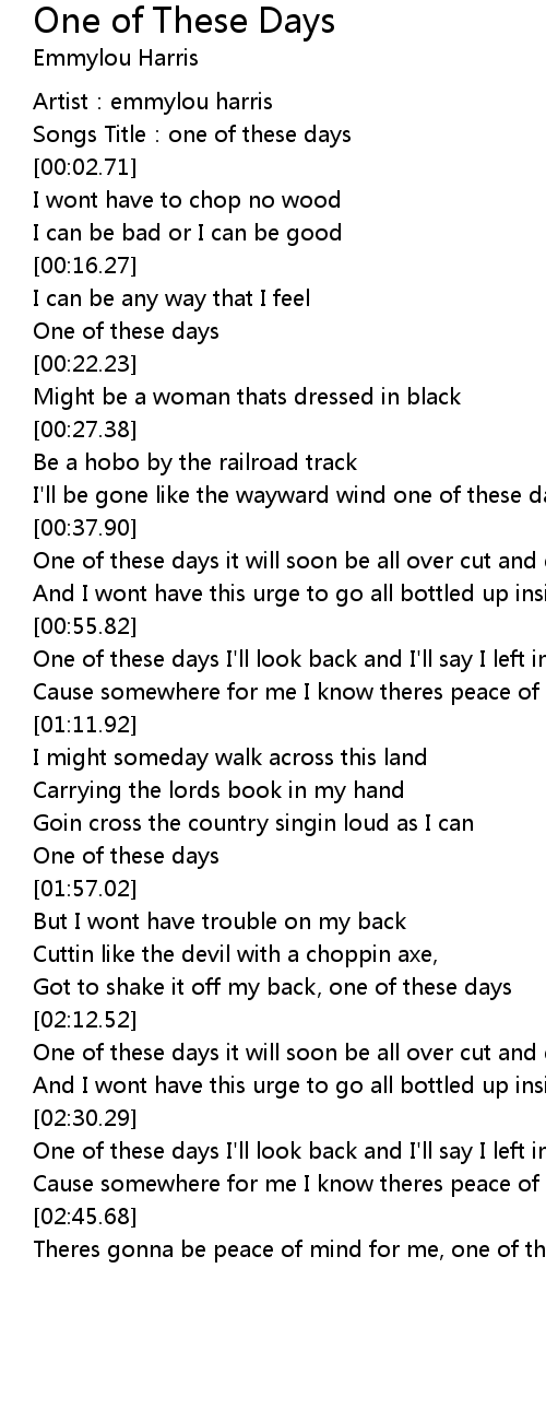 | [02:46.69] | Theres gonna be peace of mind for me, one of these days |