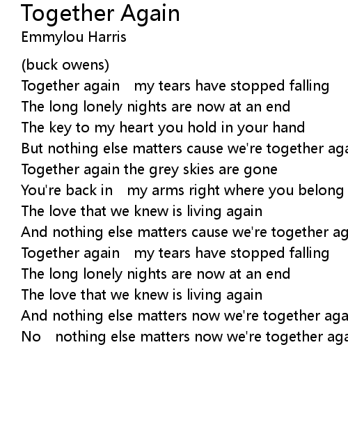 | But nothing else matters cause we're together again | |