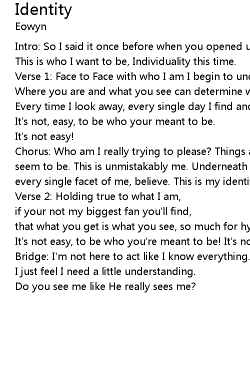 | Chorus: Who am I really trying to please? Things aren?t always quite what they seem to be. This is unmistakably me. Underneath the surface you'll see, | |