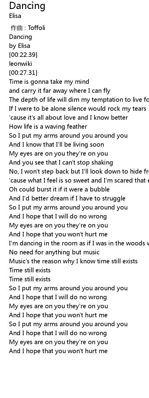 | [03:42.81] | I' m dancing in the room as if I was in the woods with you |