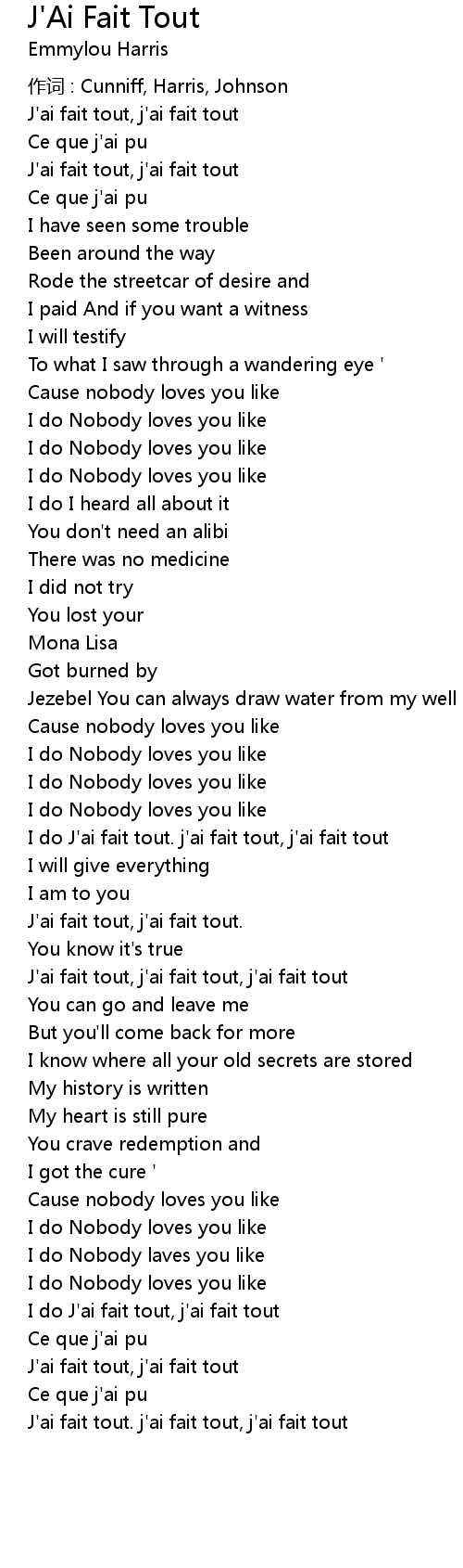 | I do J'ai fait tout. j'ai fait tout, j'ai fait tout | |