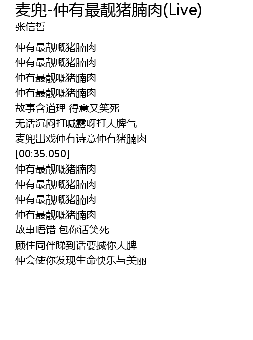 | [00:35.860] | zhòng yǒu zuì jìng kǎi zhū nǎn ròu |