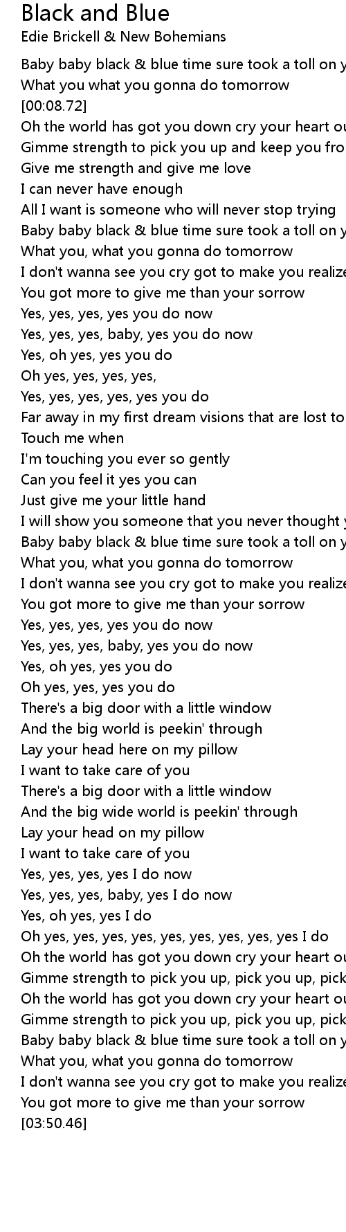 [00:00.77] Baby baby black & blue time sure took a toll on you