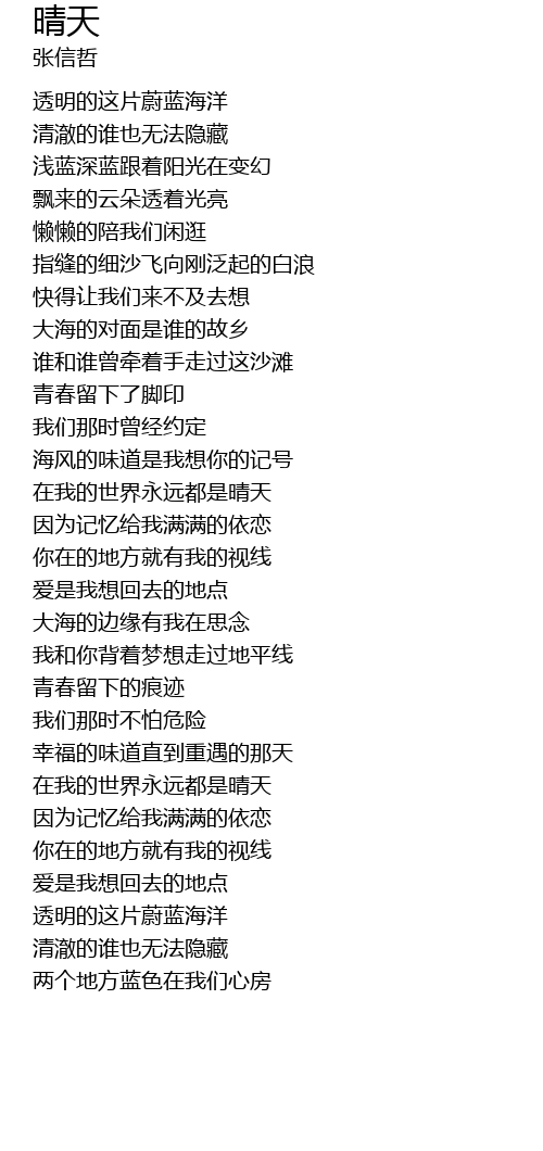 | [00:25.600] | tou ming de zhe pian wei lan hai yang |