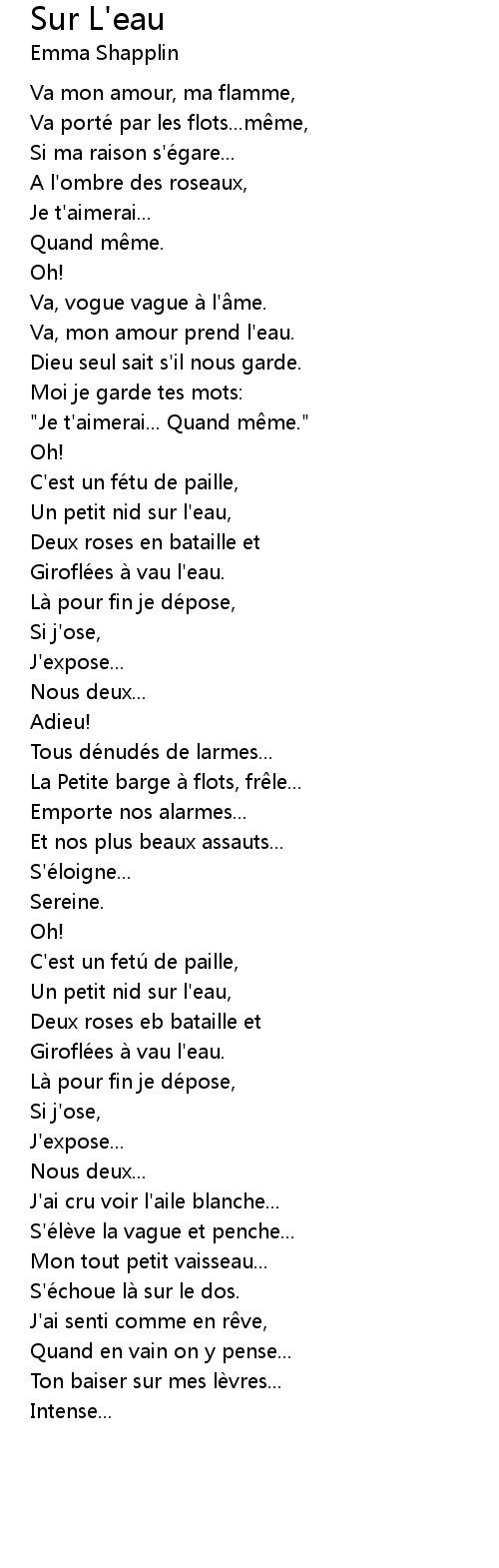| Song | Sur L'eau |