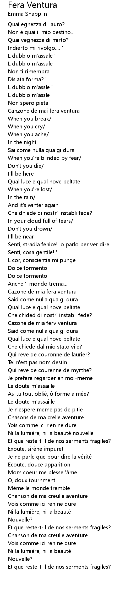 | Canzone de mai fera ventura | |