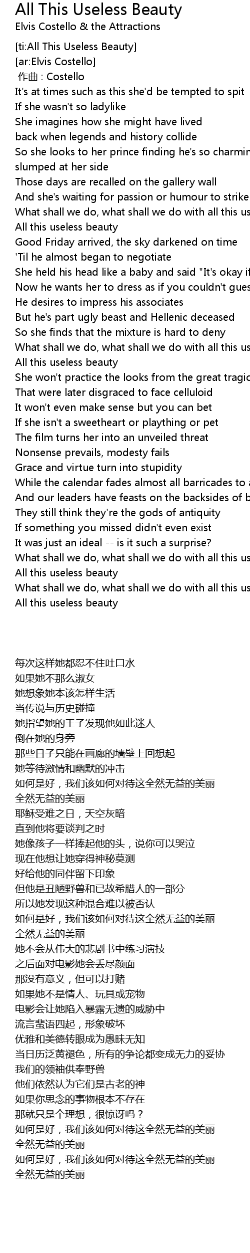 | [00:56.390] | What shall we do, what shall we do with all this useless beauty? |