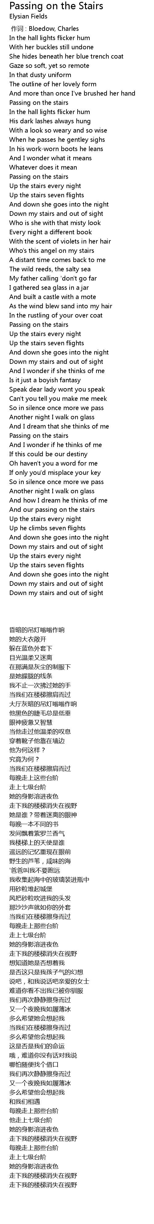 | [04:05.69] | And our passing on the stairs |