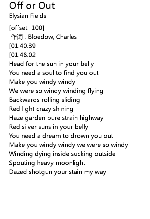 | [02:10.78] | Winding dying inside sucking outside |