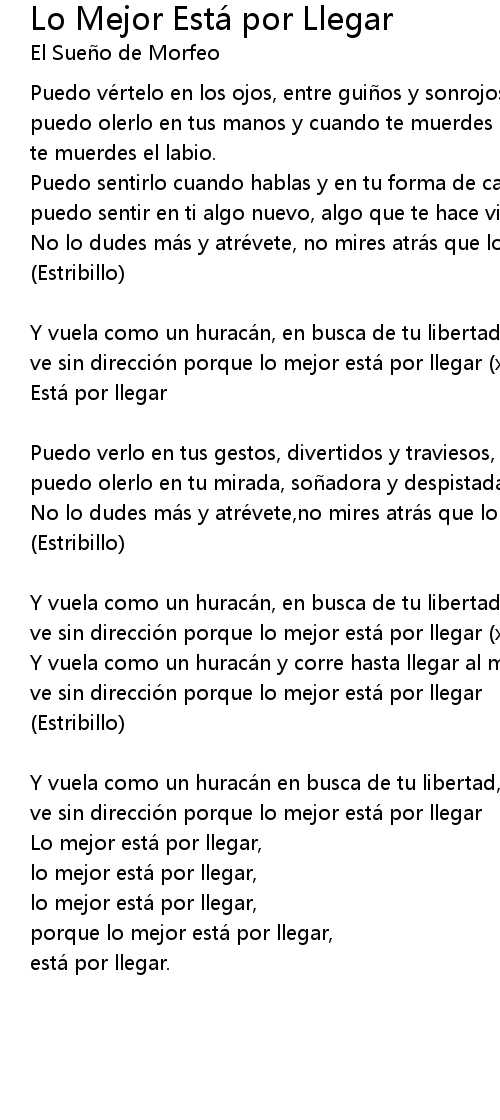 | ve sin dirección porque lo mejor está por llegar (x2) | |