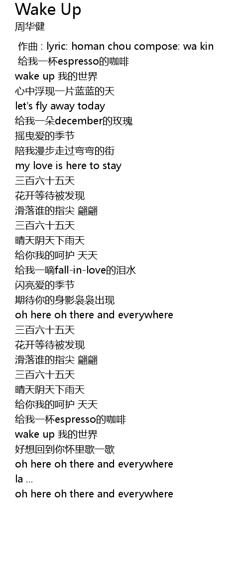| [02:41.920] | wake up wo de shi jie |
