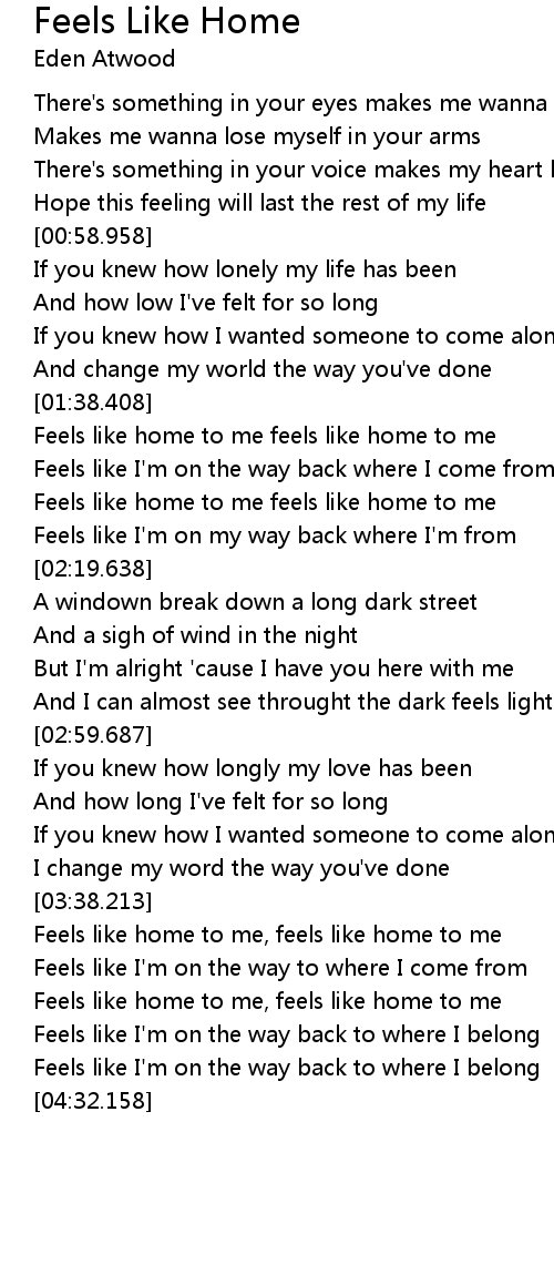 | [01:41.380] | Feels like home to me feels like home to me |