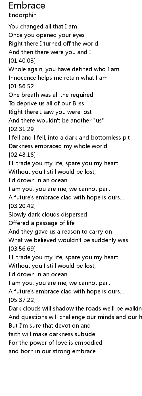 | [03:13.62] | A future's embrace clad with hope is ours... |