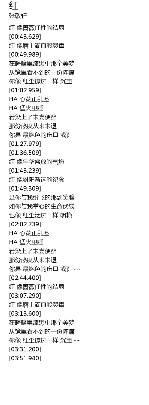 | [03:03.310] | 红 像蔷薇任性的结局 |
