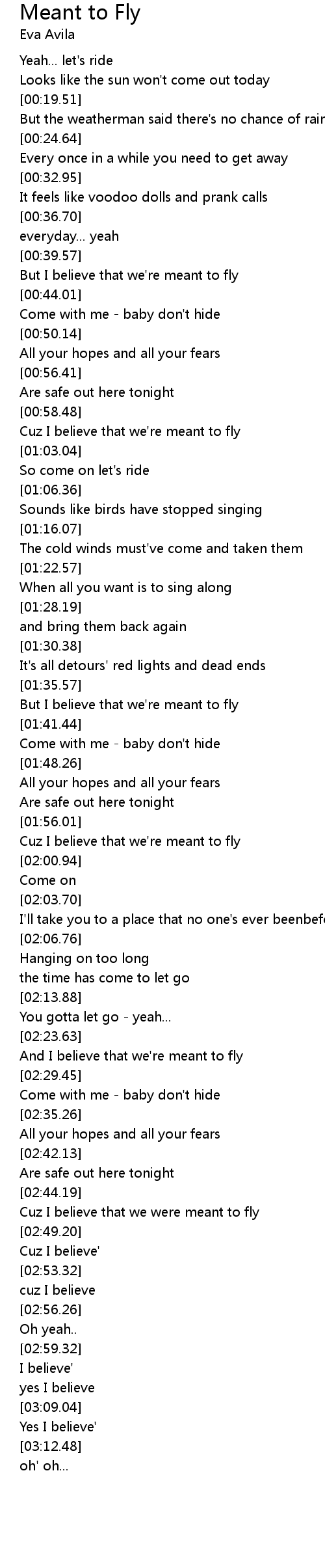 And I believe that we're meant to fly |