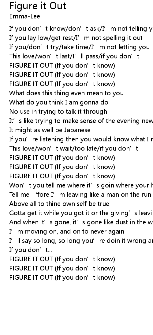 | Song | Figure it Out |