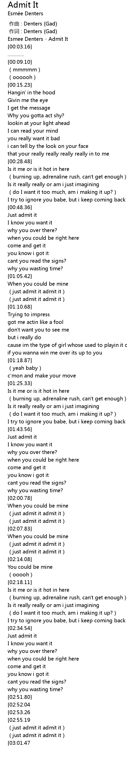 | [03:03.65][02:55.19] | just admit it admit it |