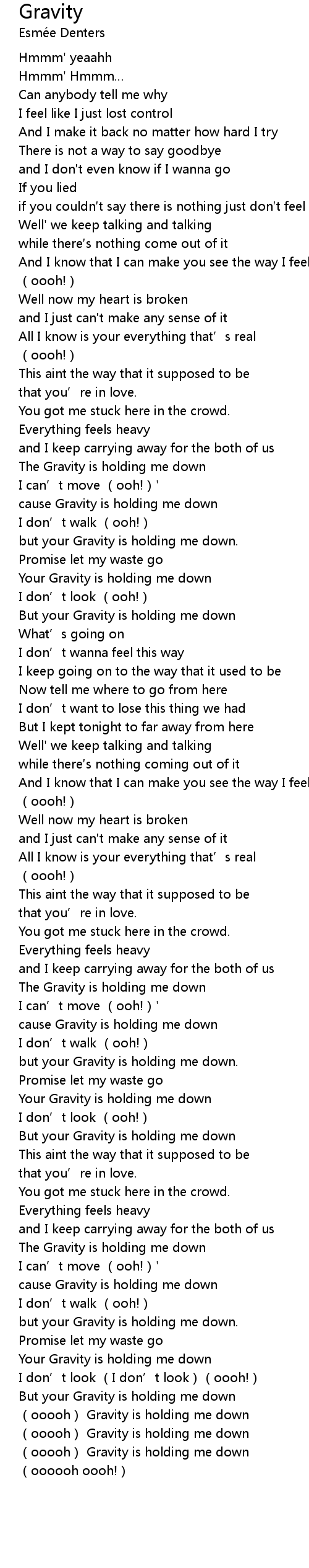 | [04:13.22] | Your Gravity is holding me down |