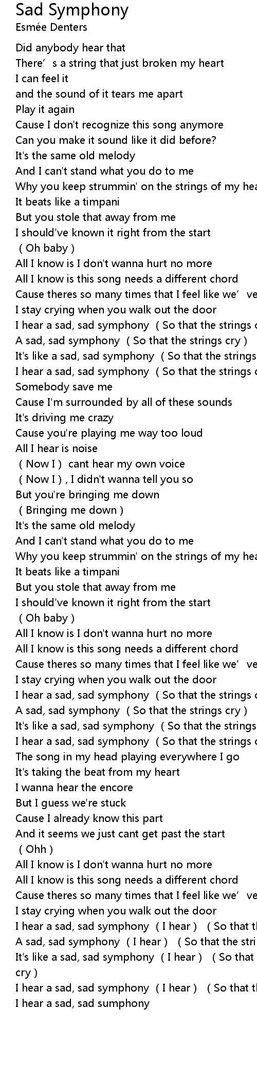 | [02:59.39] | It' s like a sad, sad symphony So that the strings cry |
