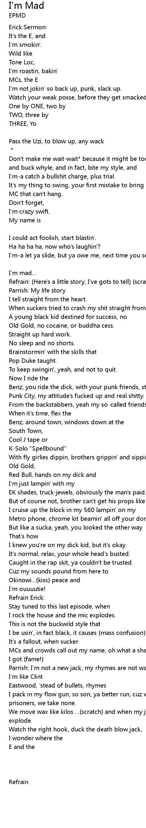 Refrain: (Here's a little story, I've gots to tell) {scratching} (I'm mad!) 4x |