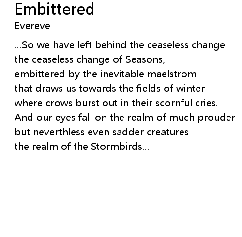 | embittered by the inevitable maelstrom | |