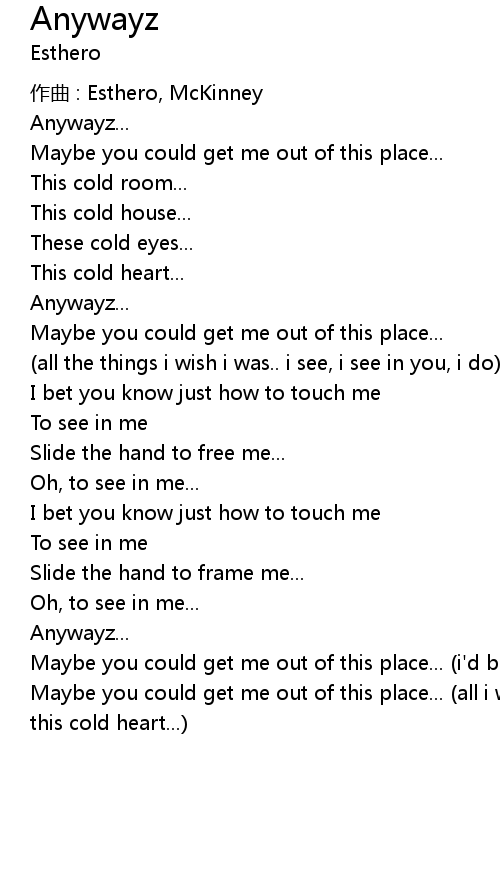 | Maybe you could get me out of this place... (all i wanted... yeah, this cold this cold heart...) |