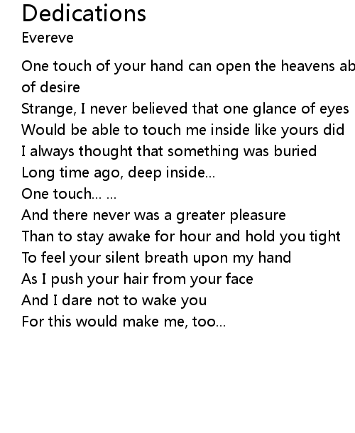 | One touch of your hand can open the heavens abducts me to long forgotten meadows of desire | |