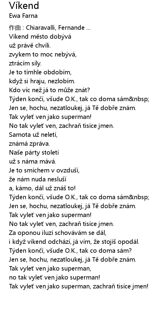 | Tak vyle ven jako superman, zachra tisi ce jmen! |