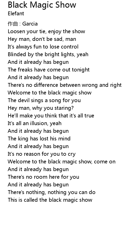 | Welcome to the black magic show, come on | |