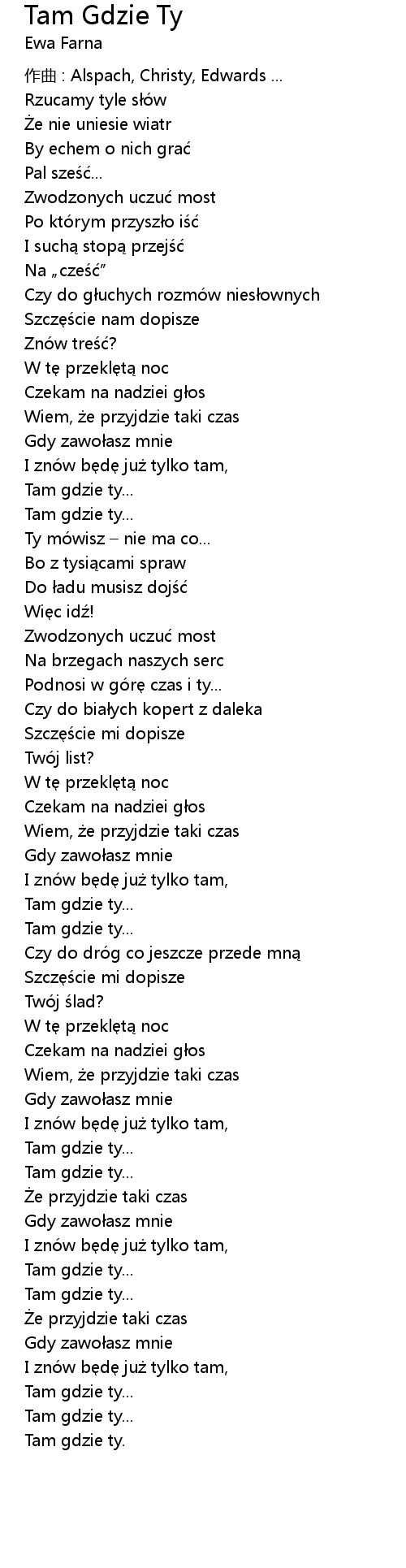 | Song | Tam Gdzie Ty |