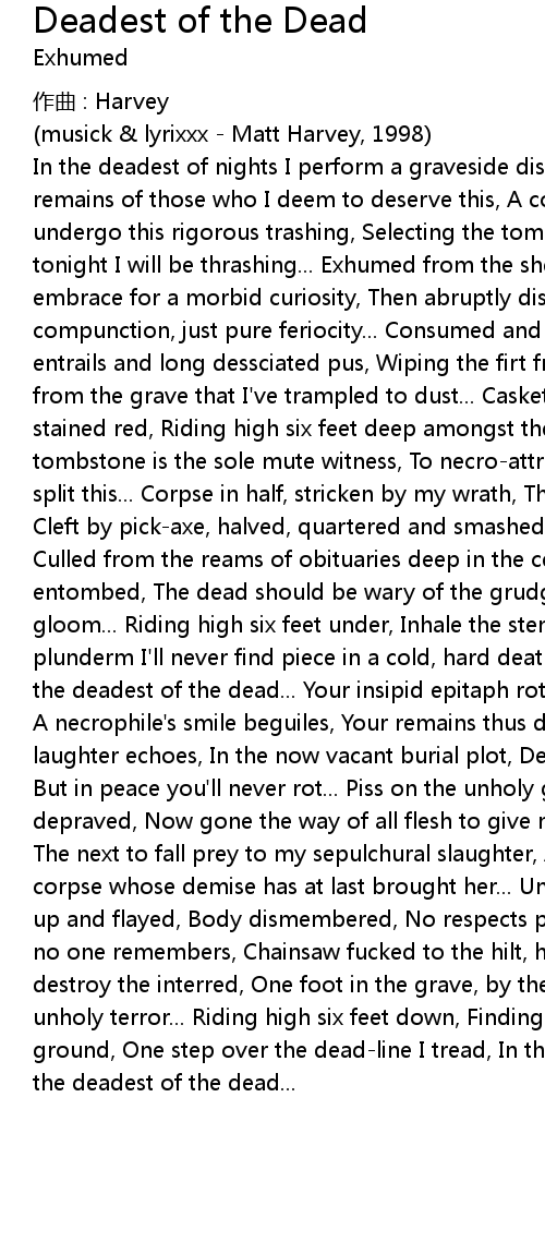 | destroy the interred, One foot in the grave, by the casket enslaved, I' m an | |