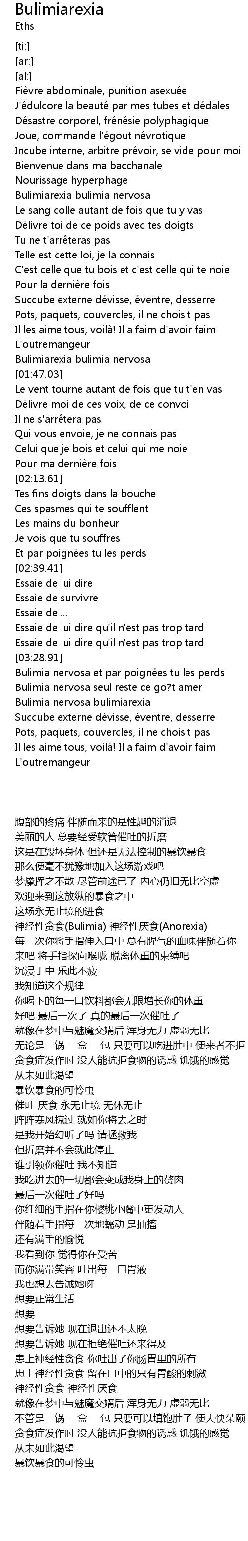 | [03:40.00] | Bulimia nervosa seul reste ce go?t amer |