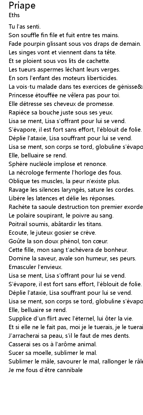 | Lisa se ment, son corps se tord, globuline s'e vapore. | |