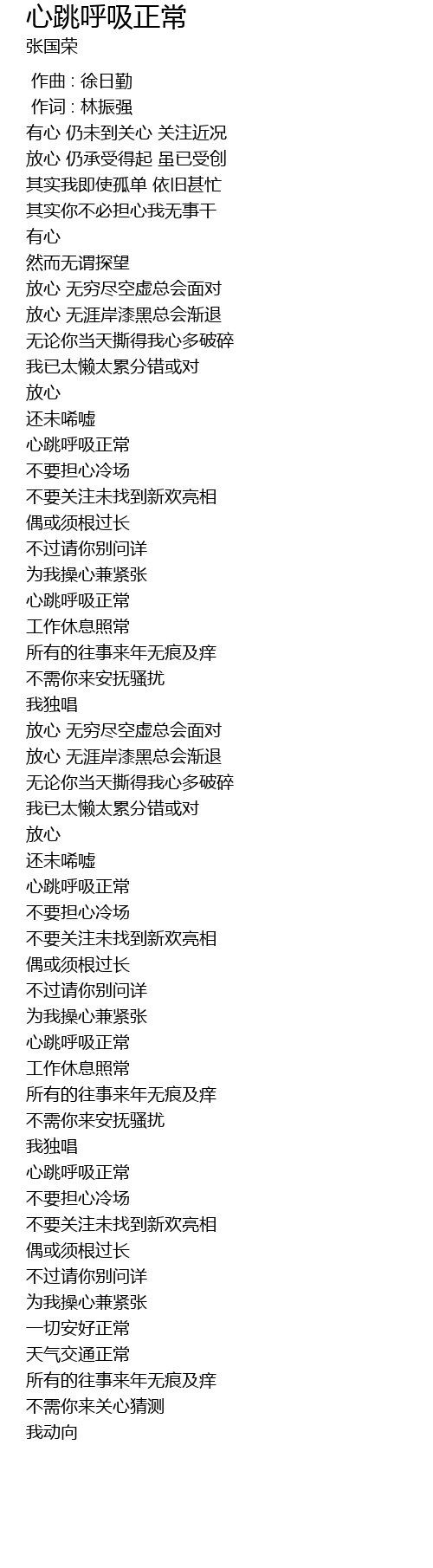 | Song | 心跳呼吸正常 |