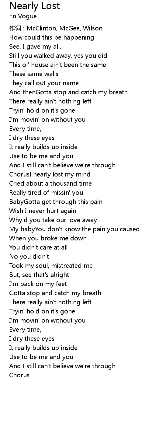 | ChorusI nearly lost my mind | |