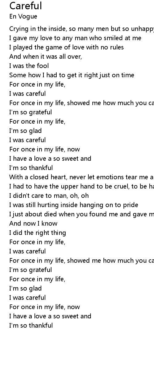 For once in my life, showed me how much you care and |
